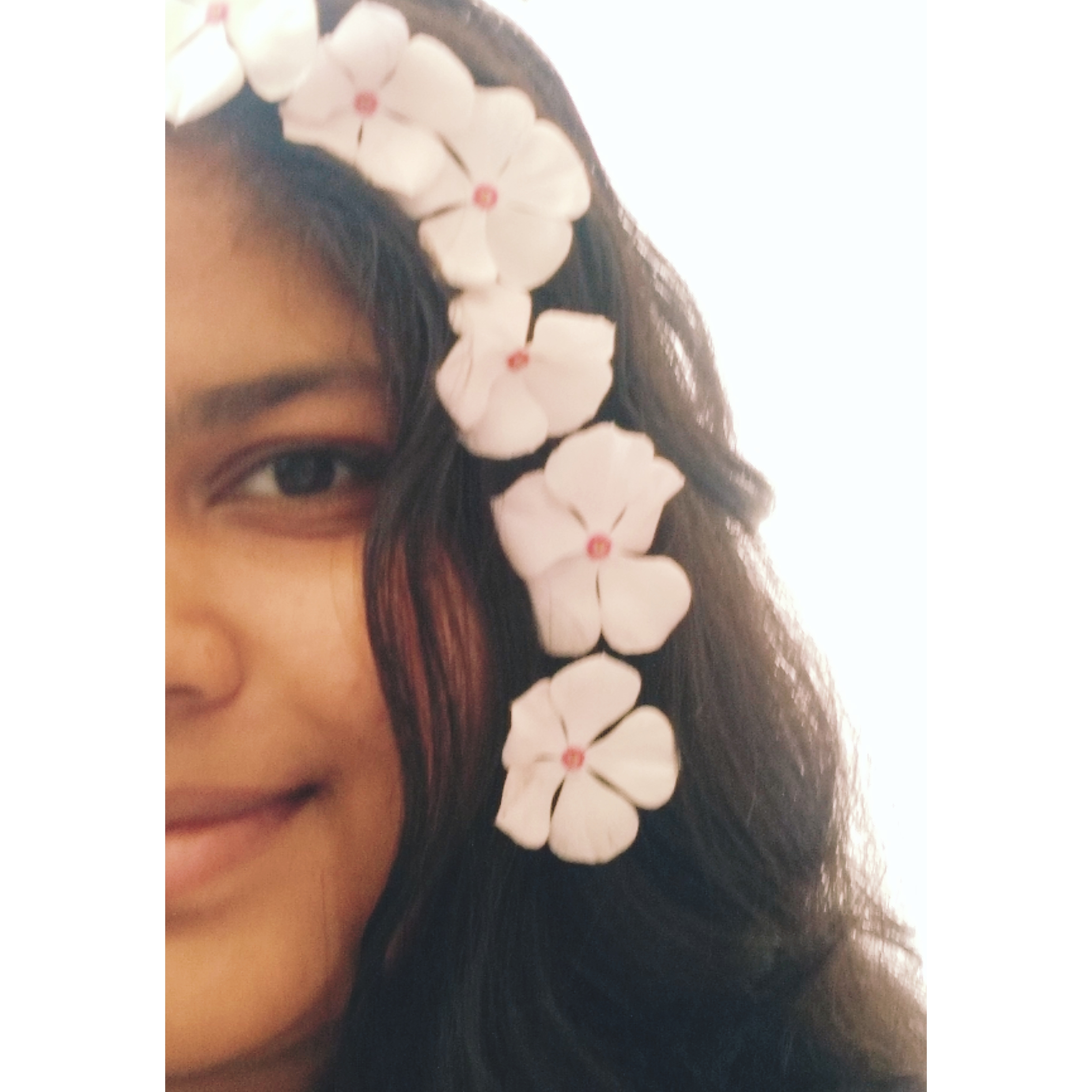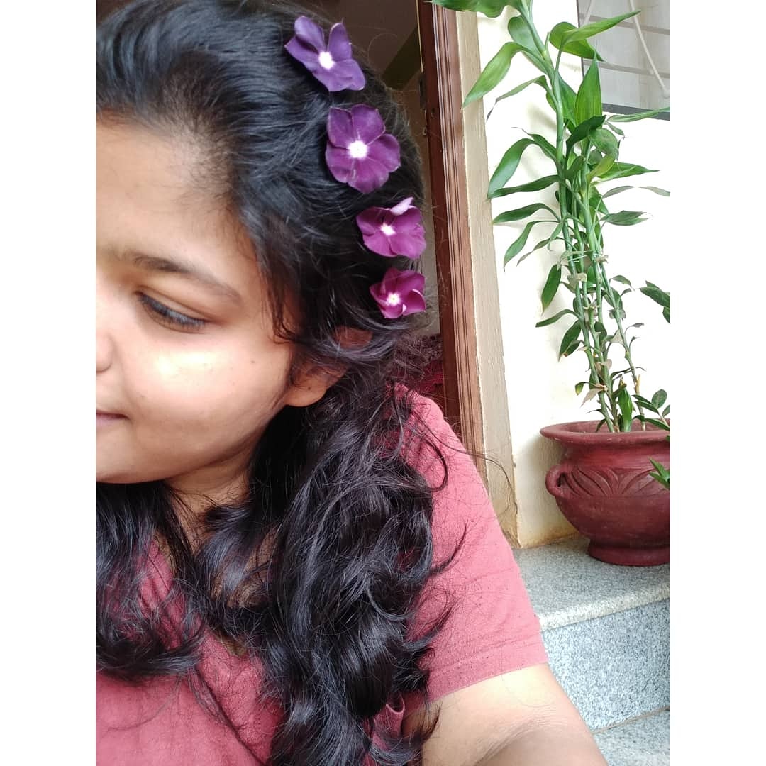 Suddenly looking at the mini garden, I thought I must beautifully tie up the flowers in my pitch-black wavy hair, to experience different hairstyles with different flowers.